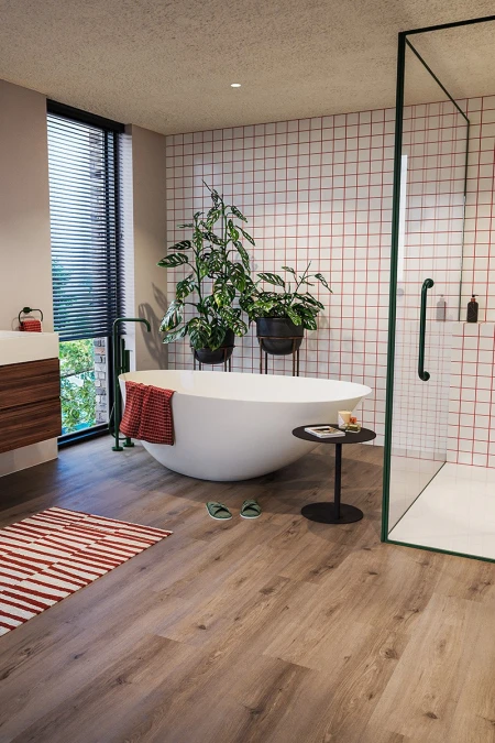 From stepping out of the shower dripping wet to splashing a little too enthusiastically into an overflowing bathtub… Your bathroom is undoubtedly the wettest room in your home, and it’s also subject to temperature fluctuations. A moisture-resistant bathroom floor is therefore a must. With Parquetvinyl’s vinyl floors, you’re choosing a water-resistant floor that’s easy to clean and looks beautiful, too.
