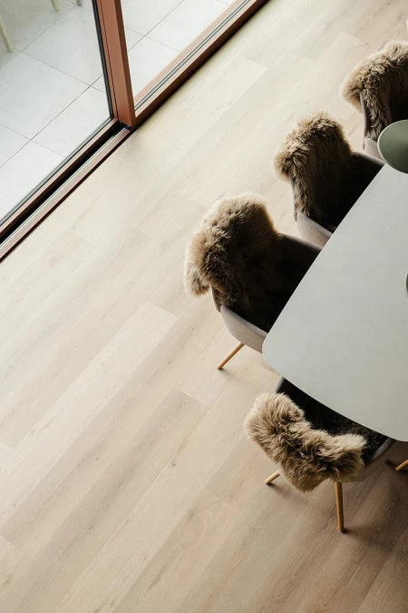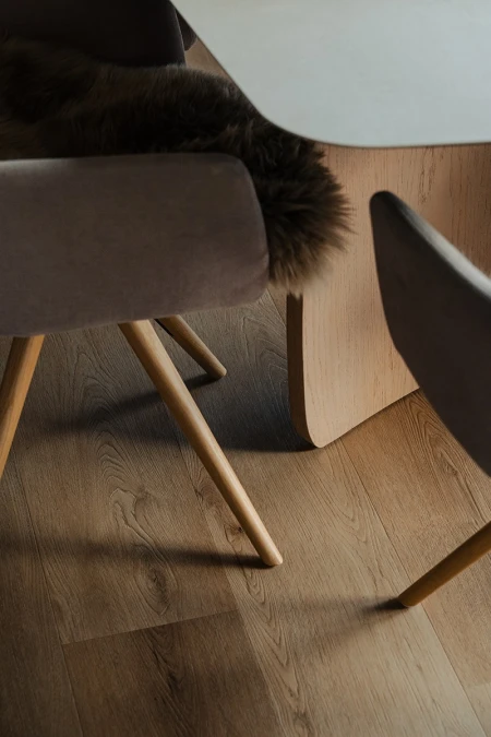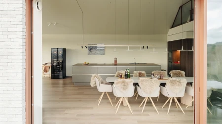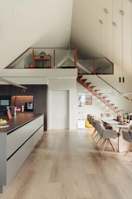 Parquetvinyl was chosen for the floor finish. A decision that fits in perfectly with the concept of the home, both aesthetically and practically. The natural wood look brings warmth to the modern spaces, while the easy-care properties are ideal for a vacation home that is used intensively. The result? A floor that not only looks beautiful but can also withstand everyday life.